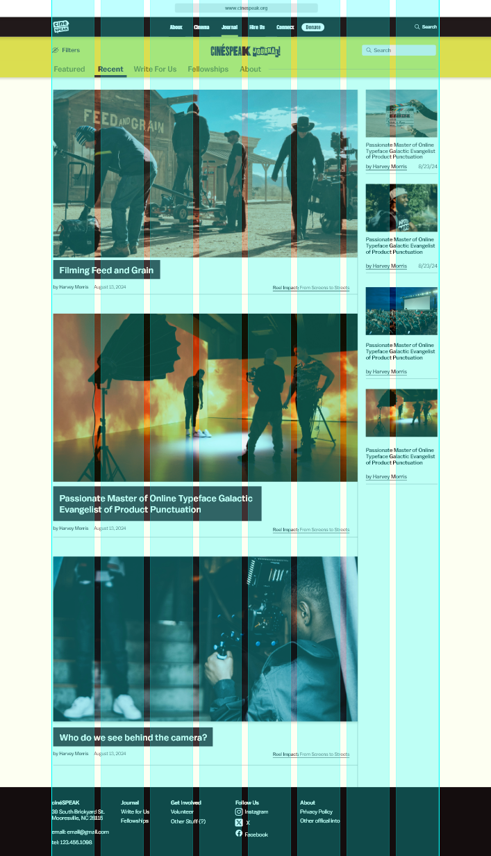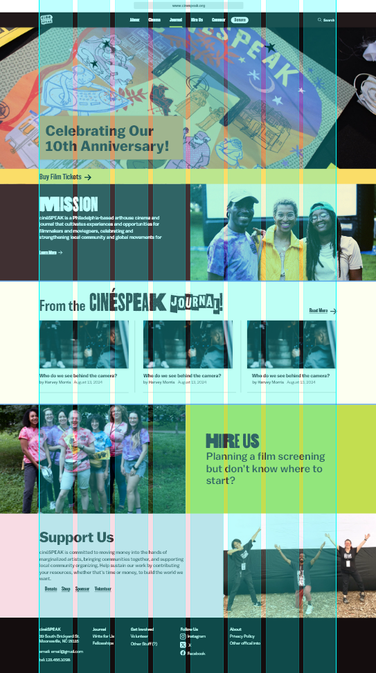 The branding of cinéSPEAK hearkens back to old posters of the 80's and 90's with the cut and paste and D.I.Y. aesthetic. This lends well to print design but could prove to be challenging to translate to web. Web design is very formatted and organized within a grid system which is in conflict with the organizations brand.