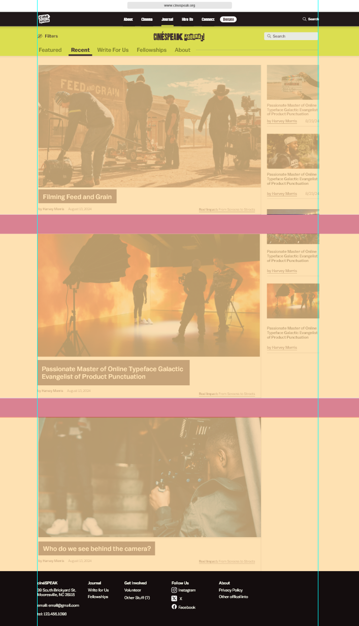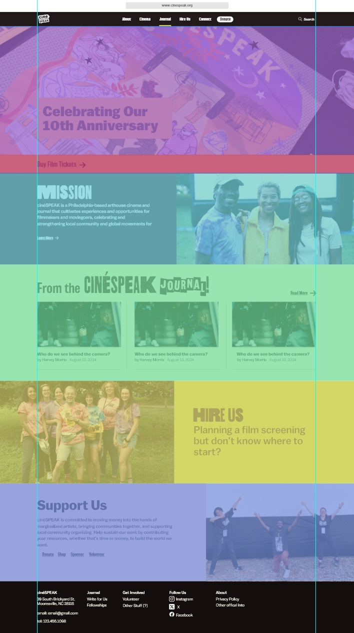 The task seems straightforward, right? Not quite. The idea of website was vague. The cinéSPEAK team already compiled a list of the website contents. I worked with 5 members of the organization leadership. The Founder & Executive Director, Managing Editor and Administrator, Production Manager, the Editor-in-Chief of cinéSPEAK journal, an online publication that supplements films with critics and community updates and the developer for the website.