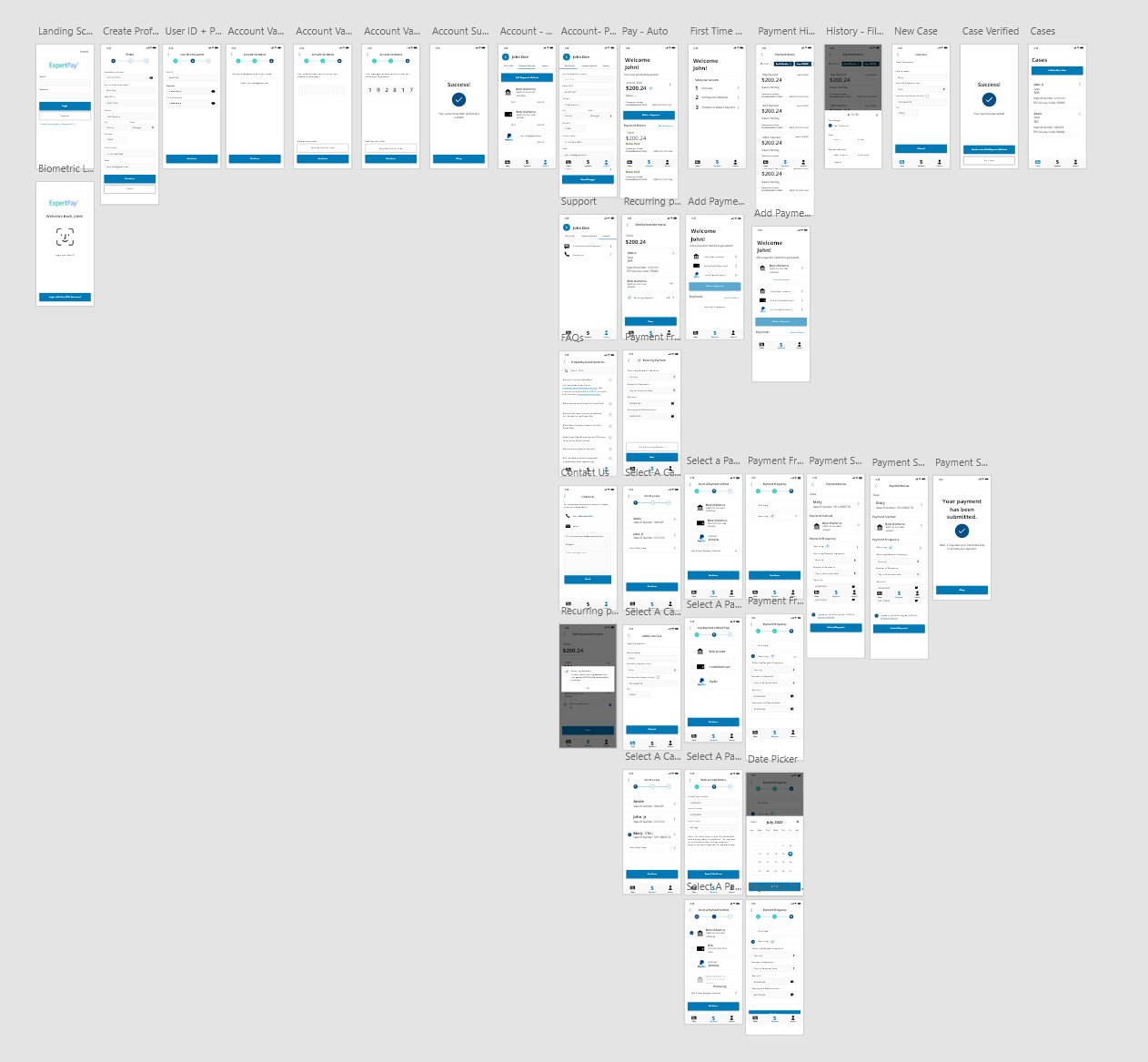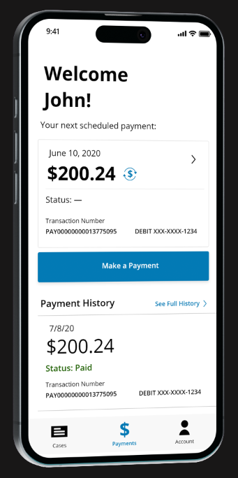 After funding was secured the scope of the project then expanded to the whole mobile app. The meat of the app was then to be created. The "meat" consisted of payment management with history and scheduled payments. As well as the option for users to manage their payments and cases. Stylistically design was then refined to follow the a style guide that was established by my greater design team.
