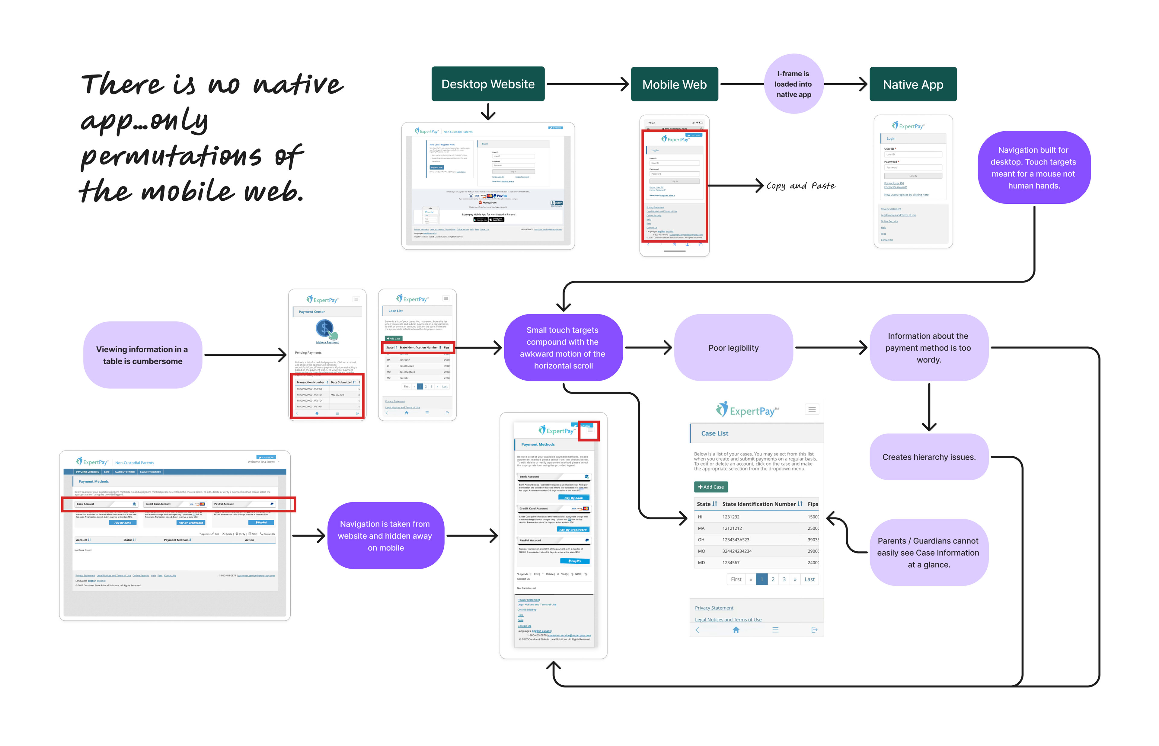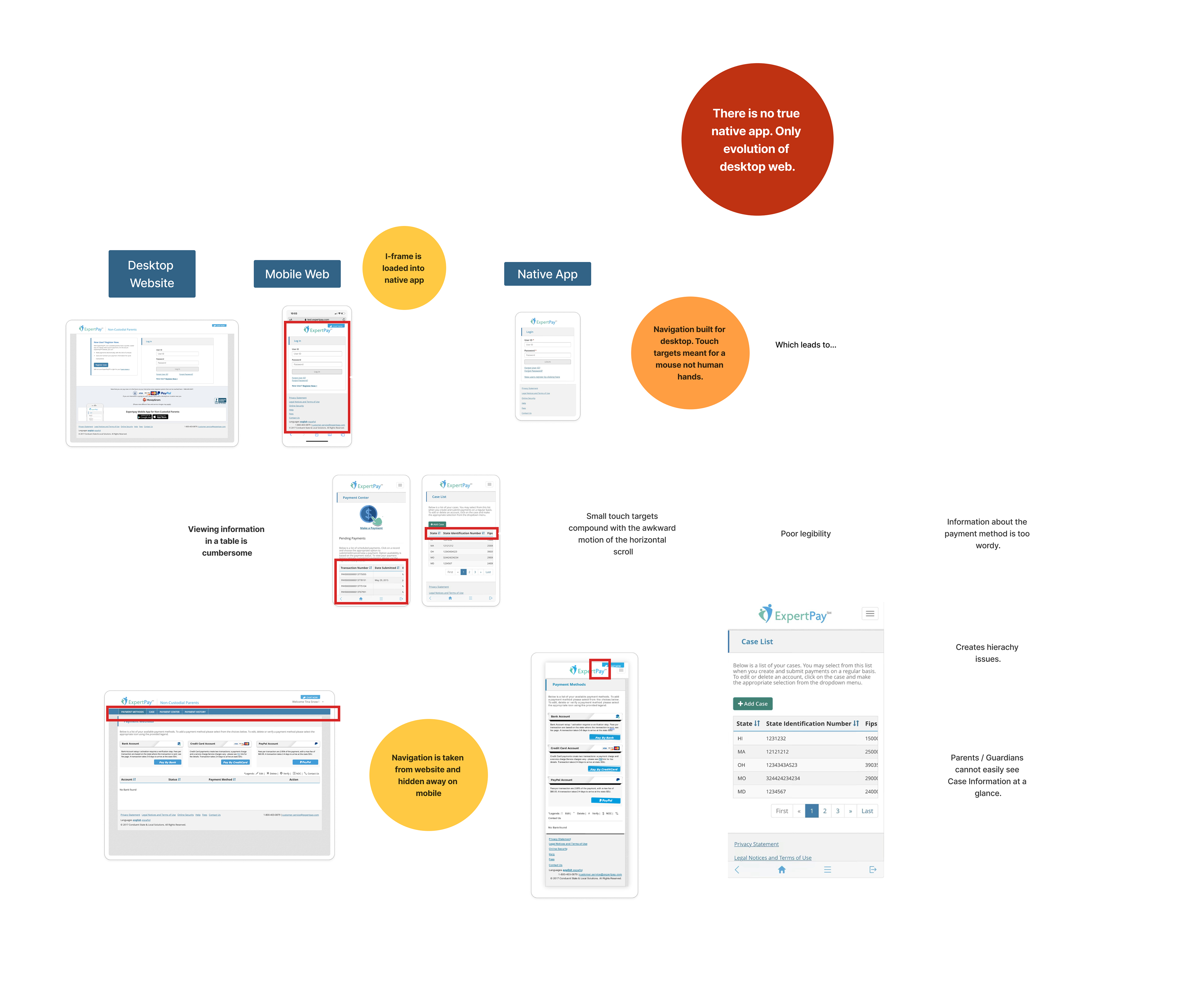 To begin the project I was shared images of the desktop website, mobile website, and native app. These were my initial observations. A more in-depth analysis can be viewed with the PDF presentation button.