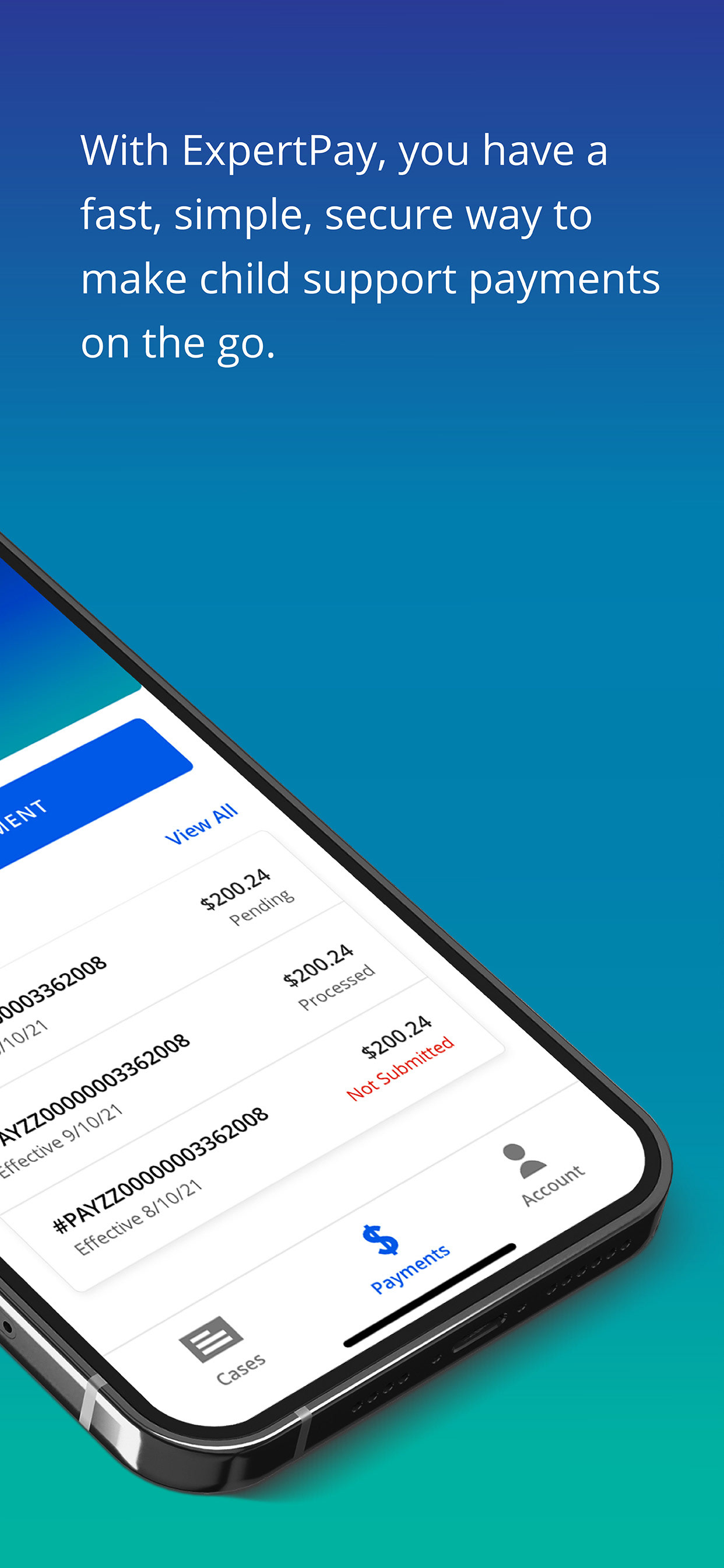 Historically these payments were submitted via mail to each individual states SDU (State Disbursement Unit). Now ExpertPay serves as a middle man between the individual and the state to facilitate digital payments. My task was to create a native mobile app for parents to download via the app store.