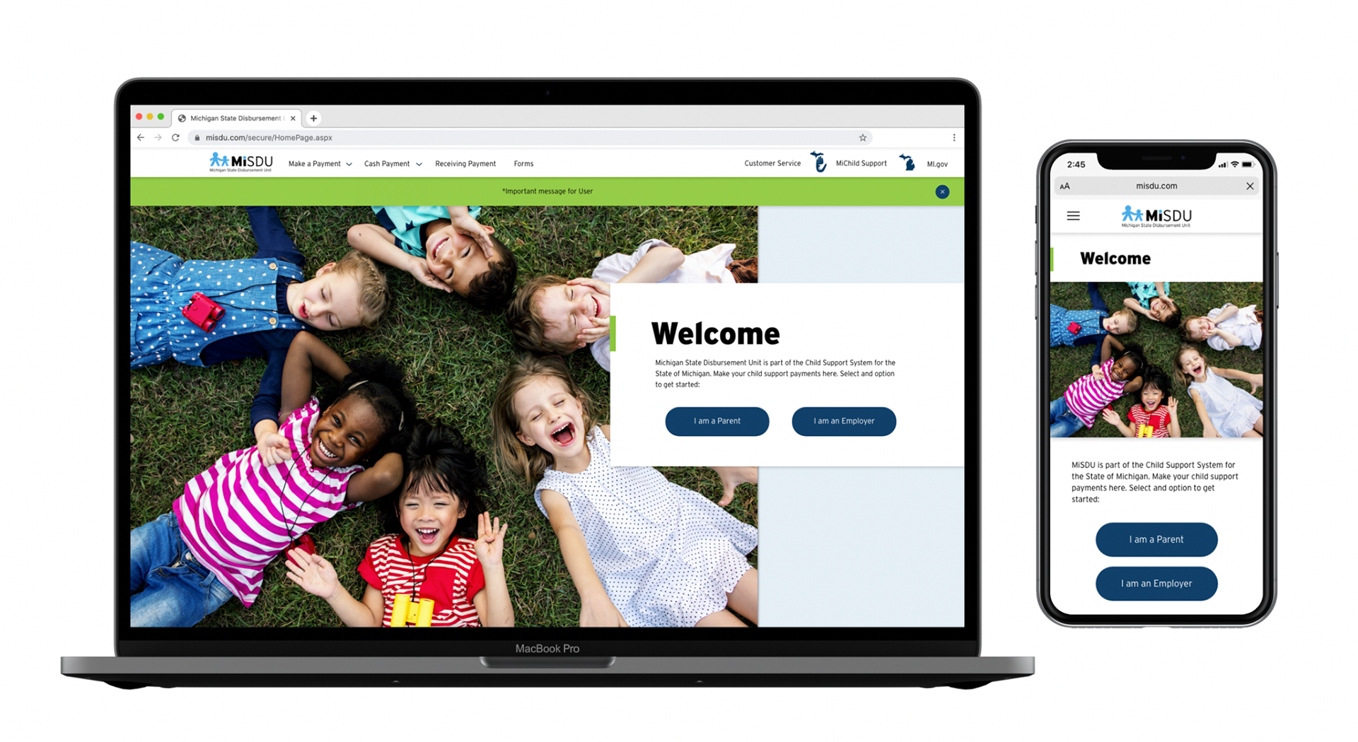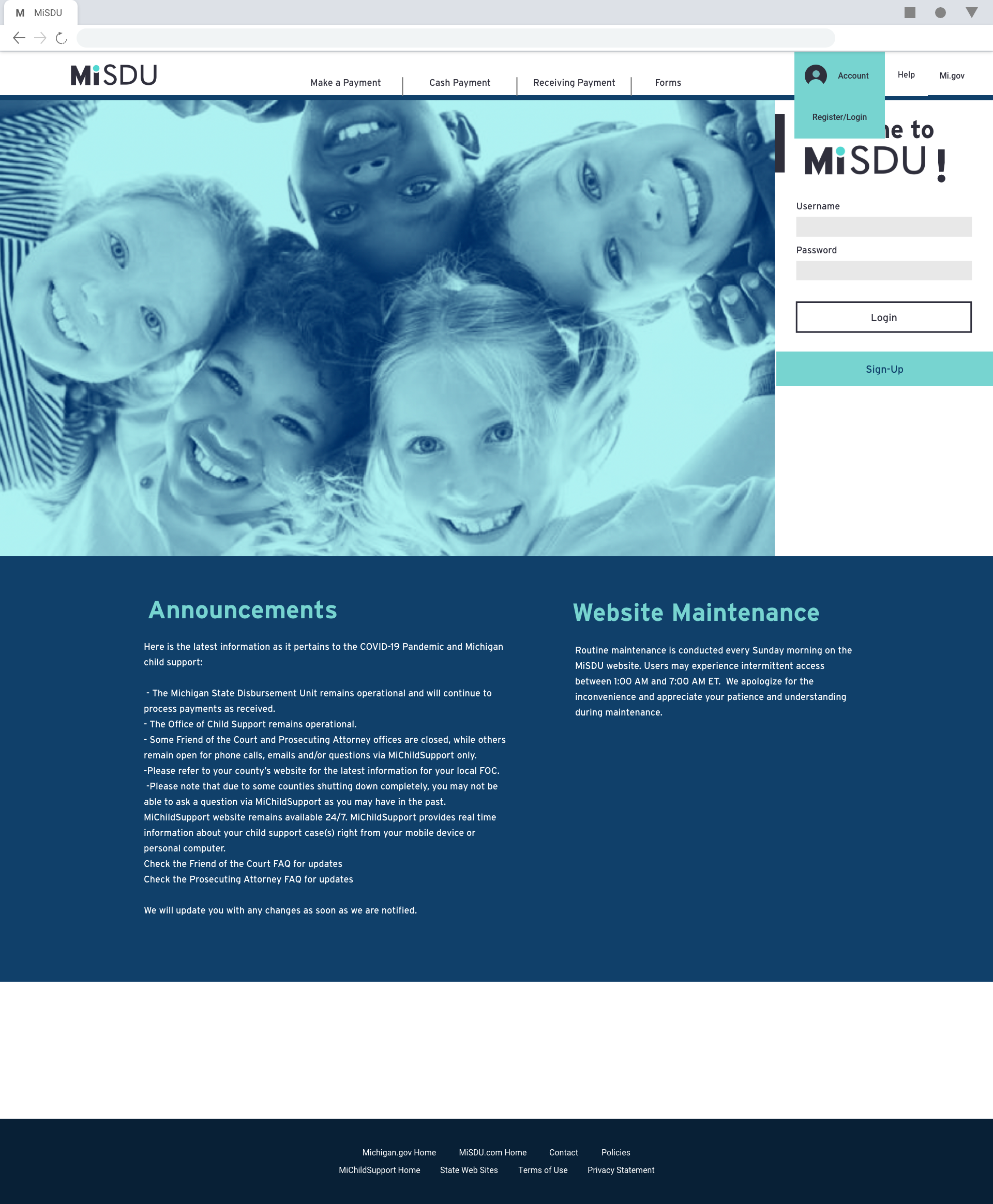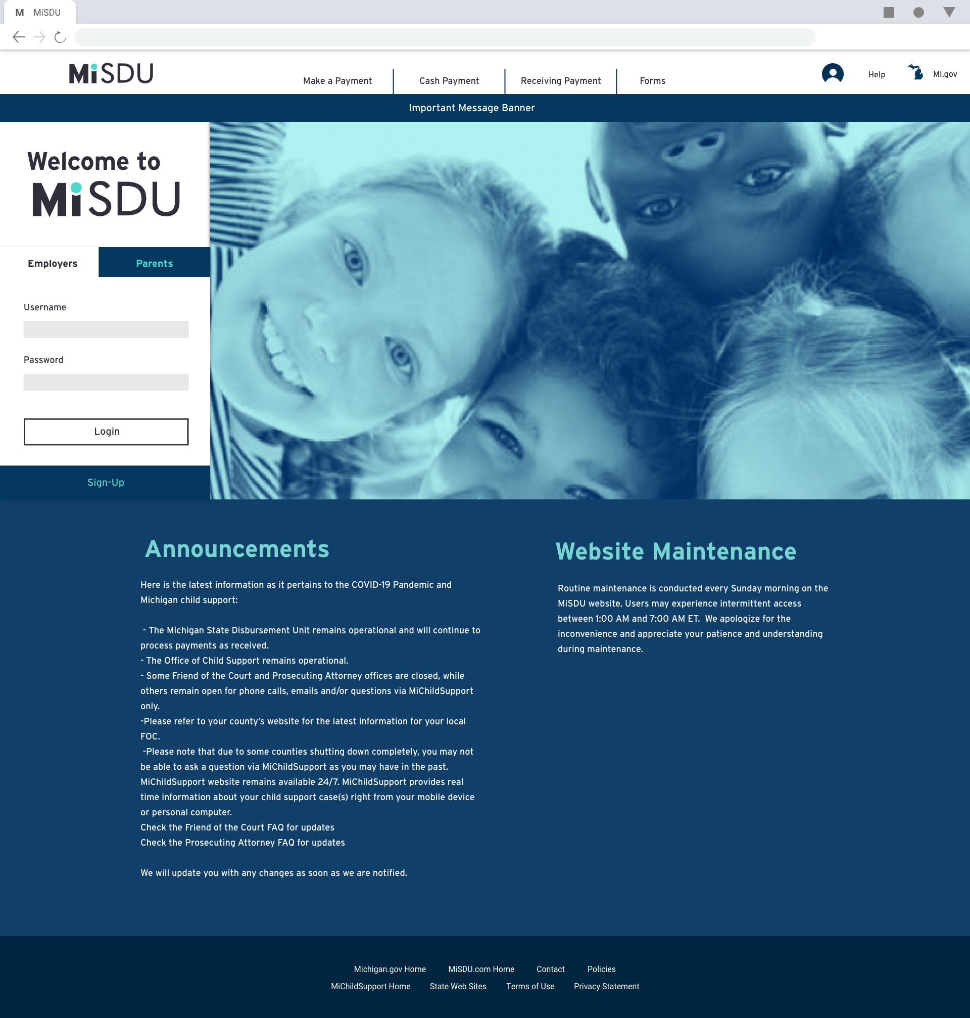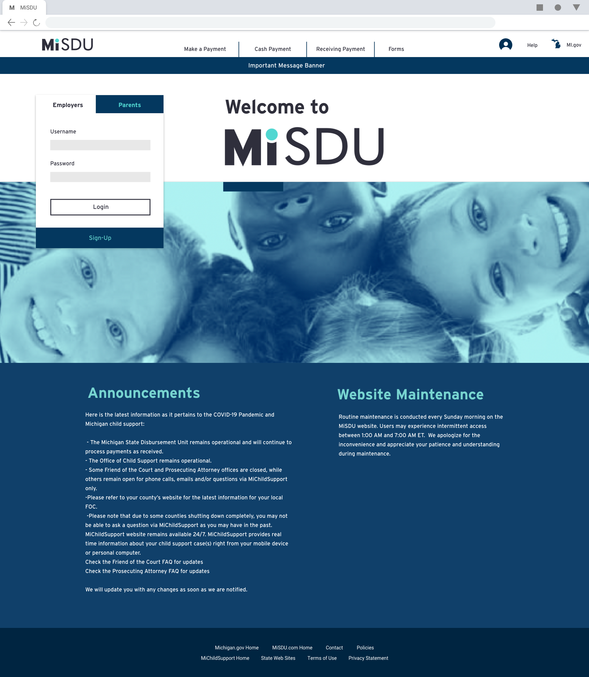 Parent/Guardians and employers use this website to pay child support or set up account drafting from their employees paycheck. The current website was cumbersome to use and outdated. I gave the portal a facelift and incorporated quality of life changes. I created a responsive design so the site could be used on mobile devices.