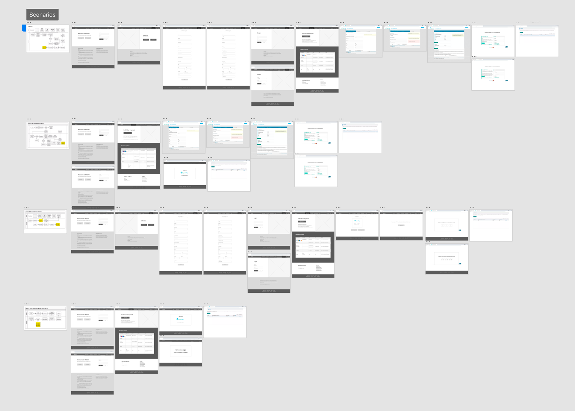 An overview of all the screen for each scenario.