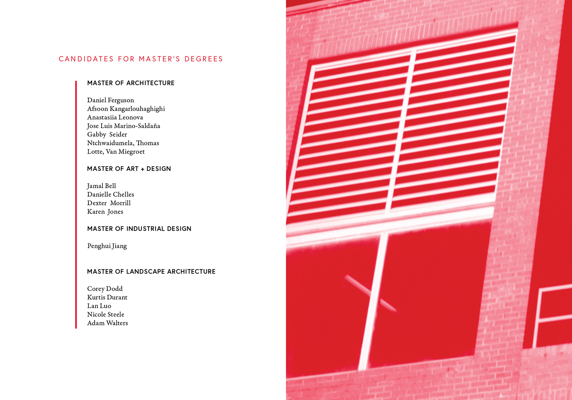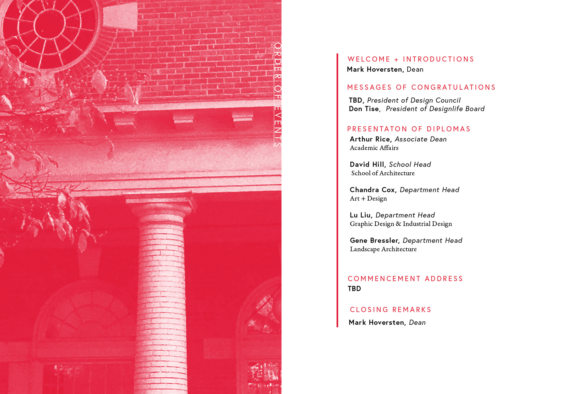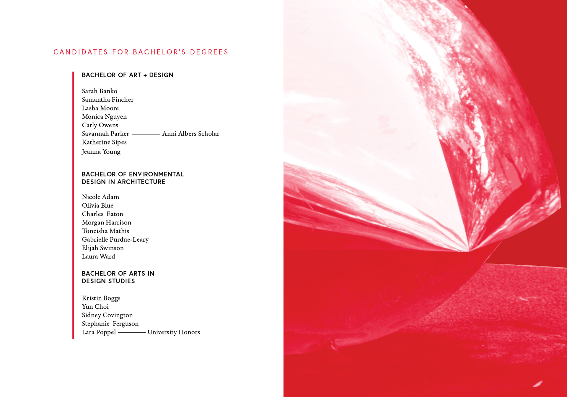 The fall 2017 graduate commencement program for the North Carolina State University's College of Design.