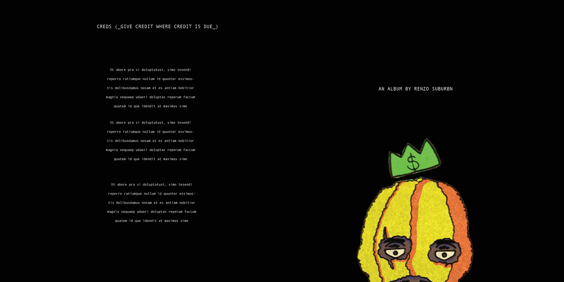 Album booklet for Renzo Suburbn's debut album subHERBEN LEGEND. Though it is missing lyrics this the visual the direction that it would have taken.